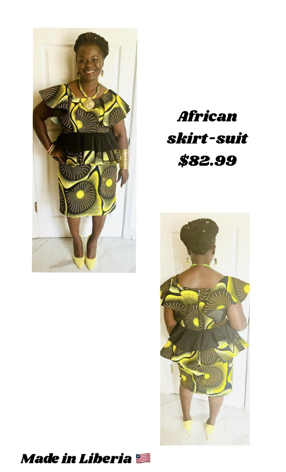 Yellow, Green and Black African Print Skirt-suit
