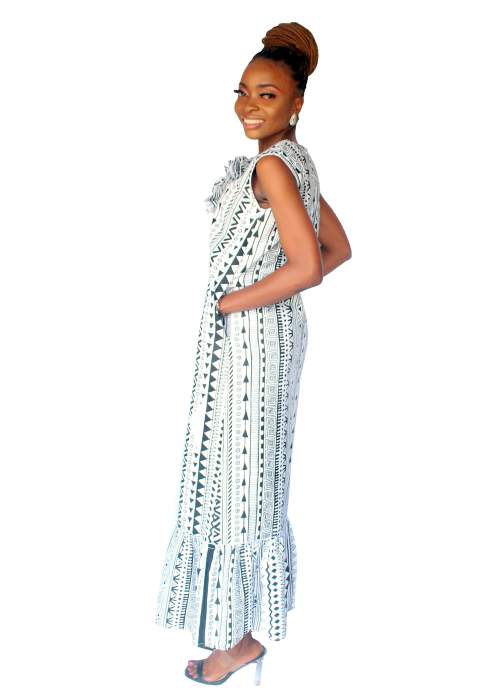| The beautiful tribal boho maxi dress with pockets you were waiting for! It has ruffles at front center chest. Keyhole at back with one button. A black and white maxi African dress perfect for summer, beach wear, party, concerts, formal, casual, church or travel. The kaftan cut makes it ideal for any body shape. Want a gift for friend, birthday, anniversary, Christmas gift for your mom, wife, daughter, sister, friend or some self love/gift. Own it. The colour may be slightly different due to the lighting/computer resolution. |