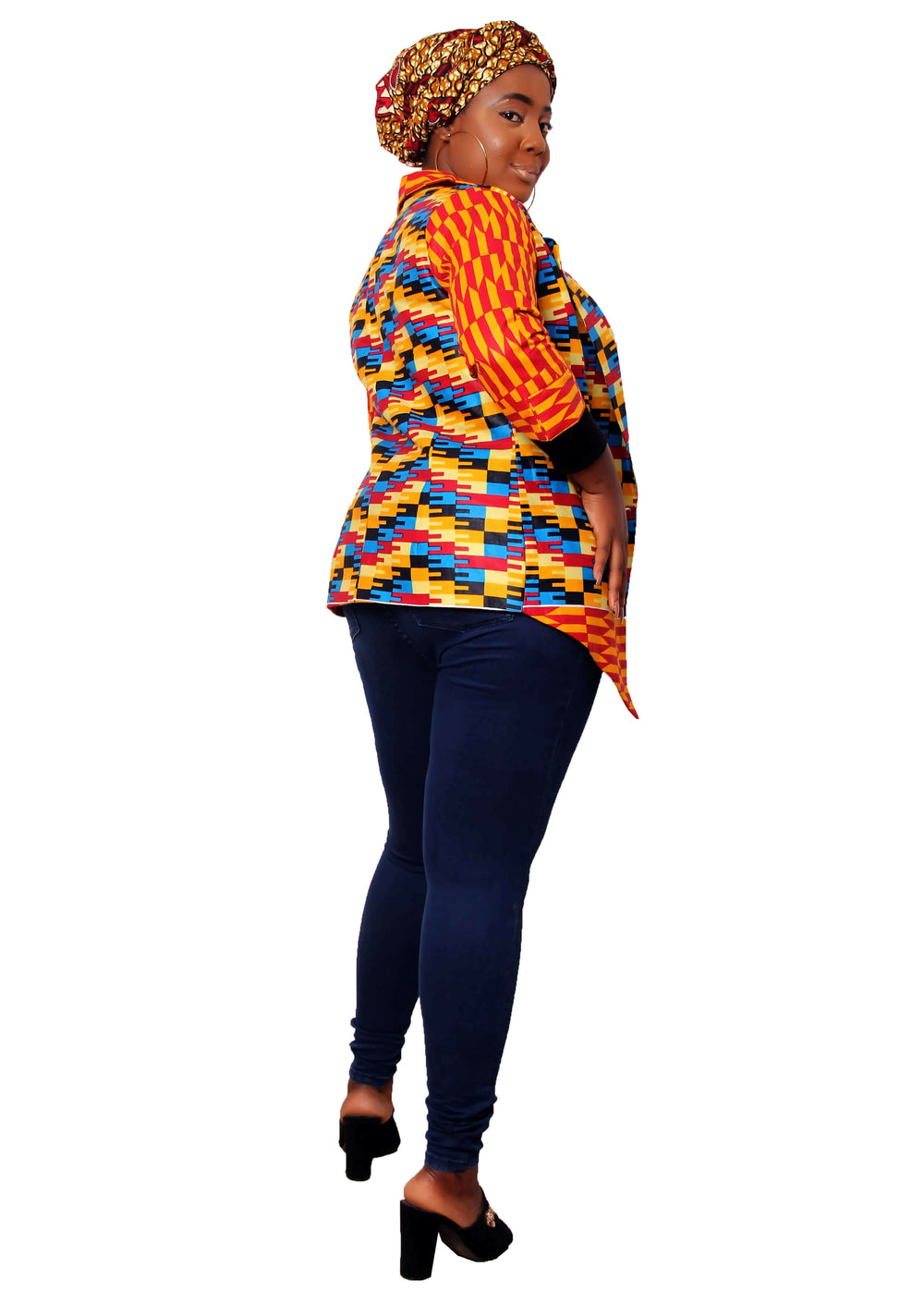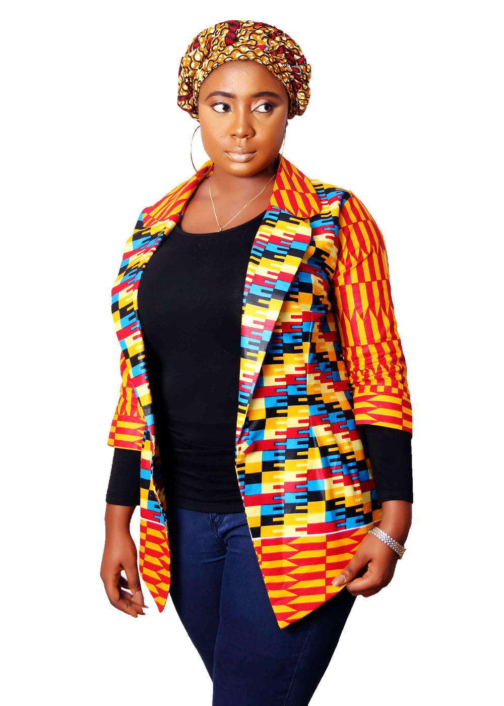 Why crack the brain so much to match African print clothings? Buy online now this African Two Piece Set, Kente jacket and Ankara scarf. Save yourself some styling headache . Be your own women African fashion attire consultant. This African print jacket is ladies most have. It's classy and trendy. Can be worn to work, wedding, church, engagement, business meeting and more. Can be worn with a sweater during winter/fall or a camisole during summer. Shop this ladies African jacket and headwrap online. Please adopt SIZE CHART included in product photo slide. A measuring guide is also included to assist you.